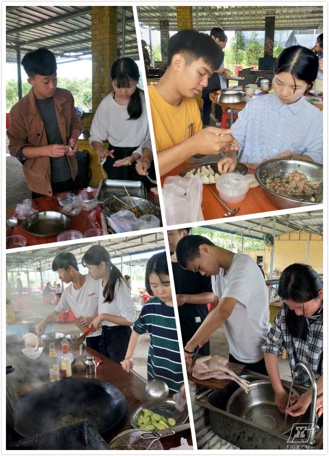结束了上午的活动后便开始自己动手做午饭,不做不知道,没想到校团委里竟隐藏着好几位大厨,在大厨们的带领下同学们有的切菜、有的烧火、有的包饺子,都竭尽所能为这顿饭做贡献,在大家的合作下不到两个小时七八道色香味俱全的菜便都端上了餐桌。