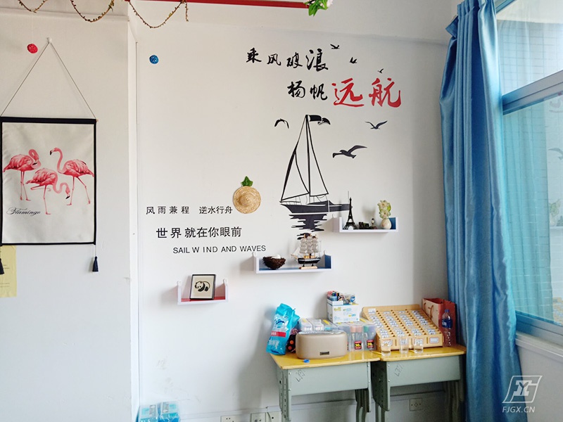 宿舍把来自四面八方的同学凝聚成一个集体,它不仅仅是我们遮风避雨的港湾,也是我们生活态度的一面镜子。本次评比主要考核了宿舍卫生、宿舍内务、宿舍空气、宿舍装扮、宿舍安全等方面。各寝室卫生状况普遍良好,做到了开窗通风,被褥叠放整齐,地面、桌面干净整洁,用电合理、安全。同学们对宿舍的墙体、天花板、门窗进行了用心的布置——有的贴了绚丽的墙贴,有的挂了可爱的手工风铃。蓝色的“海底世界”,橙色的“梦想屋”,黑色的“主题酒吧”等用新奇的涂鸦来引人注目。在同学们的努力下,一个个“小家”被装扮得十分温馨、雅致。