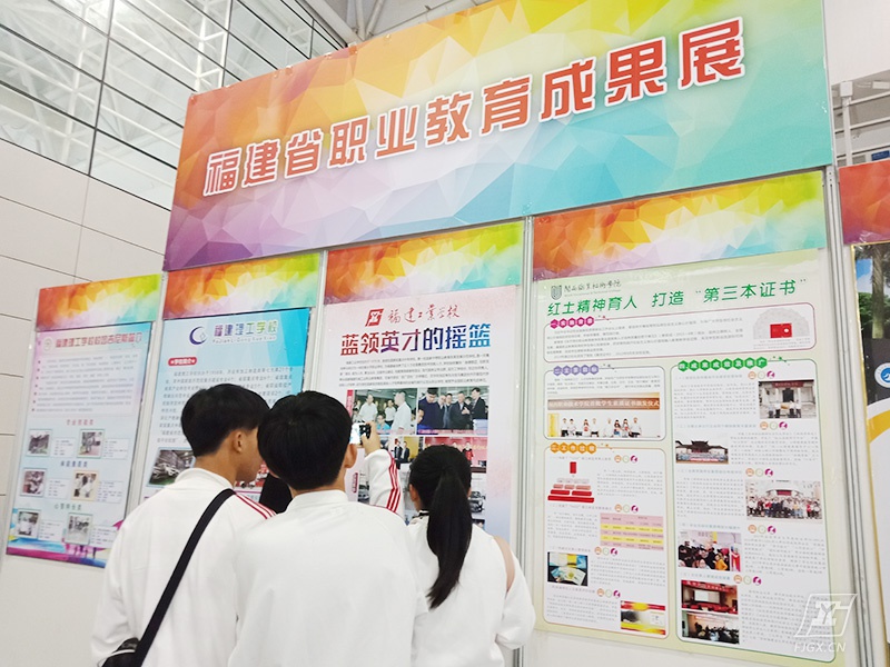 刚进展会,同学们就被刚进门的福建省职业教育成果展板给吸引住了。在展馆内,各种展品极大的满足了同学们的好奇心,他们一边欣赏一边热烈的和同学交流。