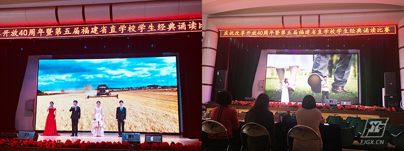 庆祝改革开放40周年,讴歌改革开放所取得的辉煌成就,引导广大学生团员青年不忘初心,牢记使命,深入学习传统经典文化精髓,努力弘扬和传承中华优秀传统文化,培育和践行社会主义核心价值观,传播正能量,自觉增强文化自信心和民族自豪感。在2018年12月22日,主题为“改革开放结硕果 继往开来勇争先”的第五届省直学校学生朗诵比赛,在福建工贸学校如期举行,本次比赛由共青团福建省直机关工作委员会主办。