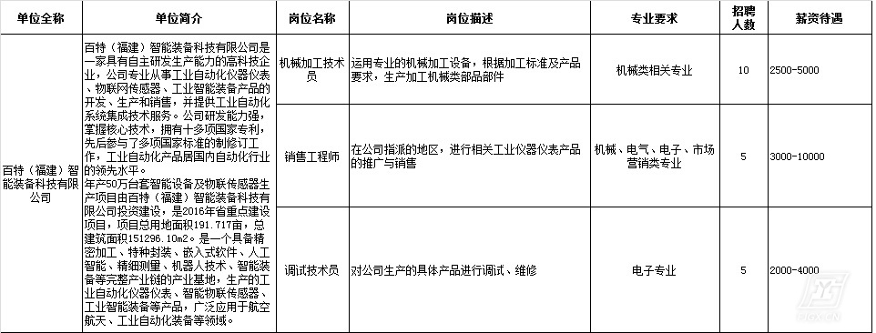 福建工业学校2016级顶岗实习学生“双选会”企业名单一