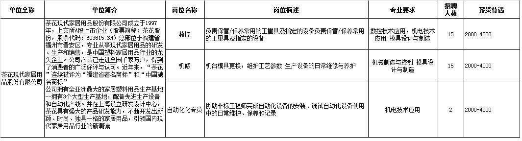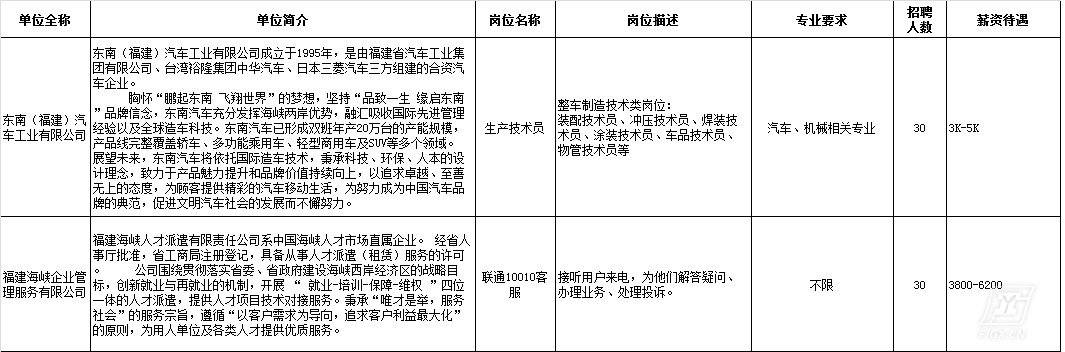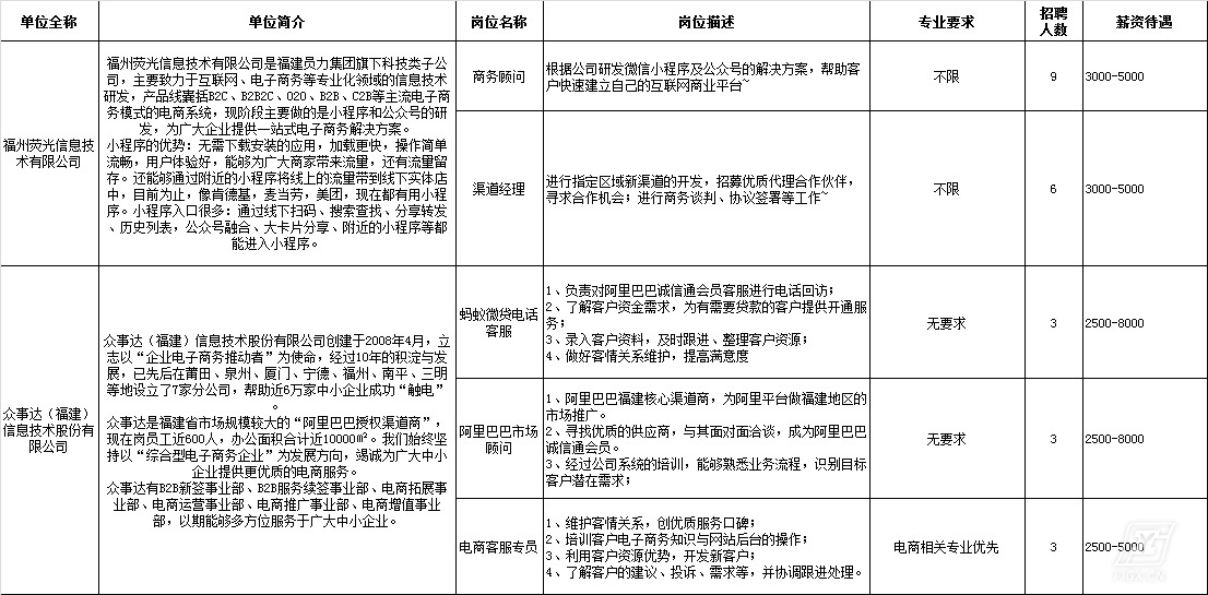 福建工业学校2016级顶岗实习学生“双选会”企业名单二
