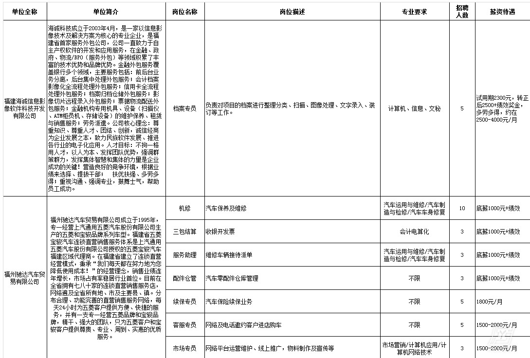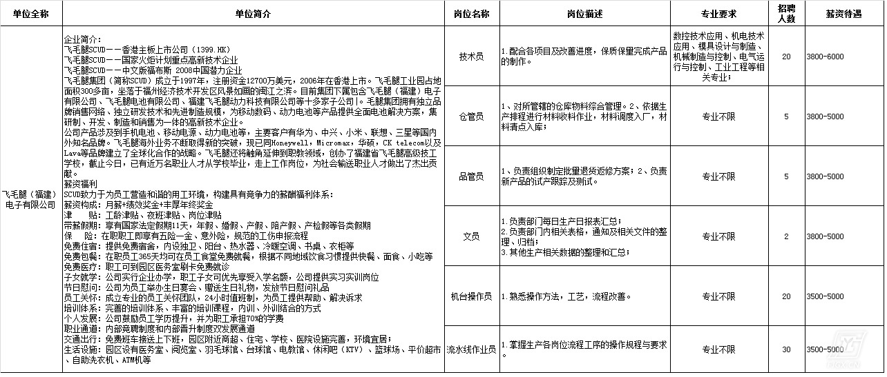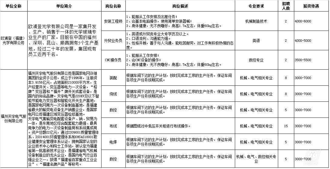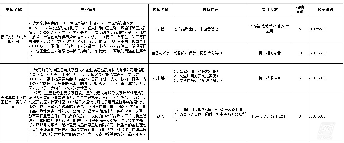 福建工业学校2016级顶岗实习学生“双选会”企业名单二