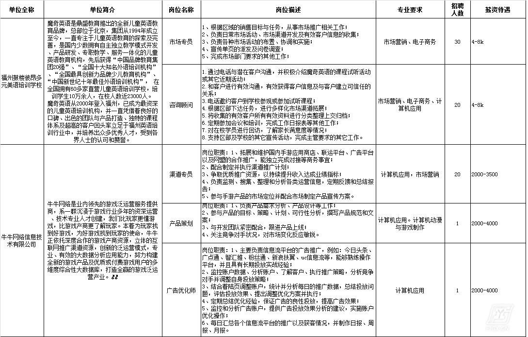 福建工业学校2016级顶岗实习学生“双选会”企业名单三