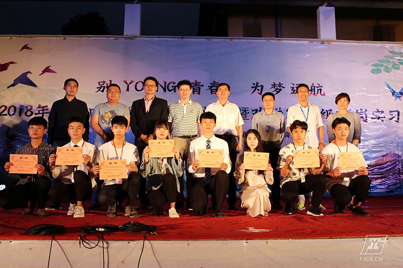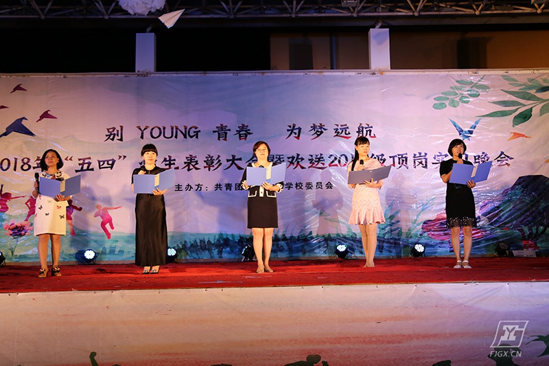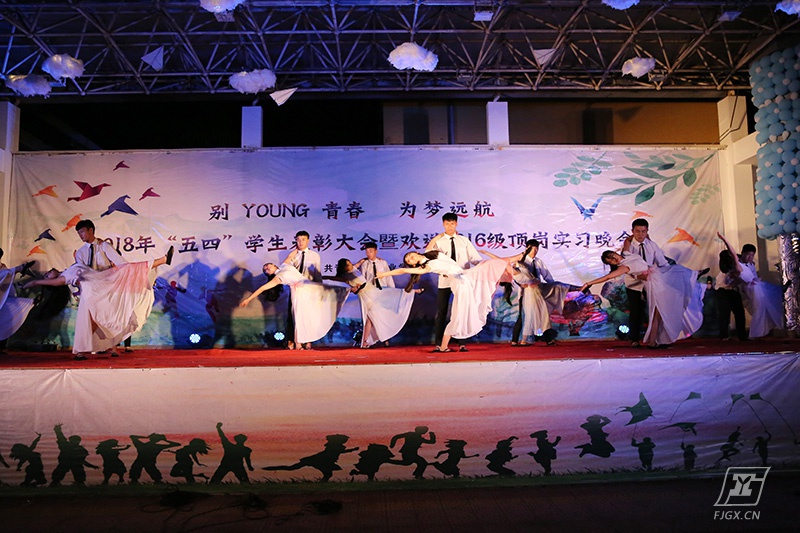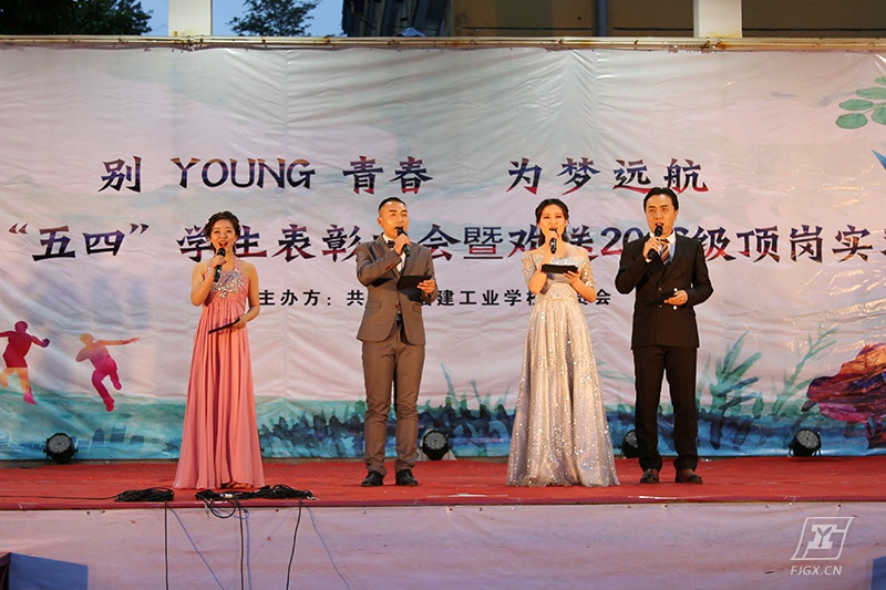 驿路漫漫欢人聚,风华正茂将别离。又是一年花开之际,又是一年毕业之时。一样的玉兰花与夏季,不一样的回忆与留恋。两年的工校时光即将画上句号,新的梦想即将启程。为了表彰在过去一年中涌现出的先进集体和个人,也为了欢送2016级学生参加顶岗实习,2018年5月10日晚上,由我校团委主办的“别YOUNG青春,为梦远航”2018年“五四”学生表彰大会暨欢送2016级顶岗实习晚会在我校田径场举行。本次晚会得到了福建钜能电力有限公司的大力赞助。晚上六点三十分,校领导班子、全体中干、班主任以及来自兄弟学校的嘉宾和三千多名学生共聚一堂,期待精彩的表演。林俊标校长做了精彩的致辞,他希望同学们弘扬五四精神,努力学习本领,开创美好未来。“五四”学生表彰大会正式开始,余梅英副校长宣读了受表彰学生干部、社团社长、优秀班集体的名单。校领导和来宾为他们颁发了奖状,并合影留念。