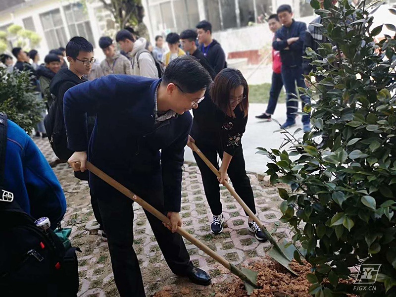 春日融融,新绿初绽。为响应植树节,传递环保理念,唤醒并深化同学们的环保意识,2019年3月12日中午,我校开展植树节活动。林俊标校长、余梅英副校长亲自带着班主任和同学们一起在风和日丽的春风里种下了希望的树苗。