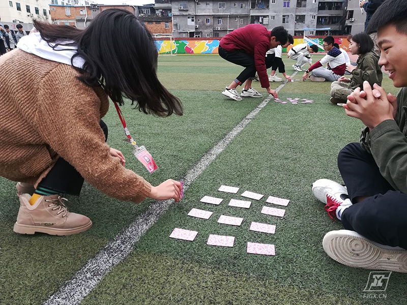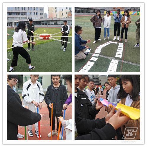 张丰凯老师以“口香糖游戏”拉开了本次素质拓展训练的帷幕。接下来分别进行了“翻扑克牌”游戏、极速60秒、“植物人是什么”、“疯狂市场”“鼓动人心”“巅峰对决”“不倒森林”等游戏,游戏现场不时传来胜利的欢呼声,加油呐喊声。
