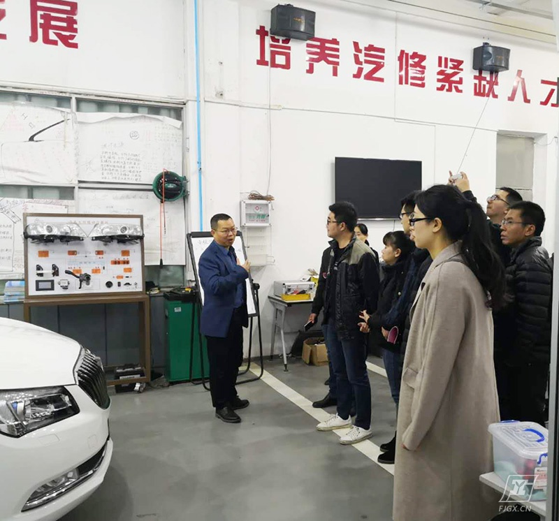 福建工业学校林俊标校长、杨尊东副校长、汽车专业教学部余茂生主任热情接待了客人,傅所长一行参观了学校校企合作宝马BEST实训基地、上汽大众SCEP项目实训基地和上汽通用汽车实训室。
