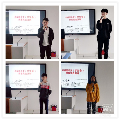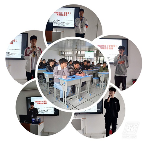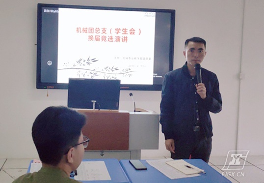为了做好学生两委干部换届交接工作,加强团队建设,为新两委提供一个展现自我的平台,2019年4月12日下午,机械专业教学部在实验楼三楼开展学生会换届竞选演讲活动。机械专业教学部副科长张文祥老师、团总支书记黄建成老师、陈龙老师及全体17级两委干部参加了会议。