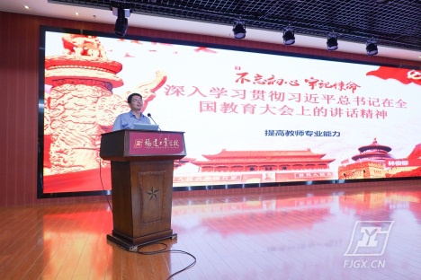 不忘初心、牢记使命,是贯彻执行党的十九大精神和习近平新时代中国特色社会主义思想的重要举措。按照学校“不忘初心 牢记使命”主题教育实施方案工作安排,6月28日下午,福建工业学校全体党员、中干、教研组长在我校综合大楼12楼报告厅召开了“不忘初心、牢记使命”主题教育之深入学习贯彻习近平总书记在全国教育大会上的讲话精神----提高教师专业能力大会。大会由党委副书记、纪委书记戴雄强主持,党委书记、校长林俊标在大会上做主旨发言。