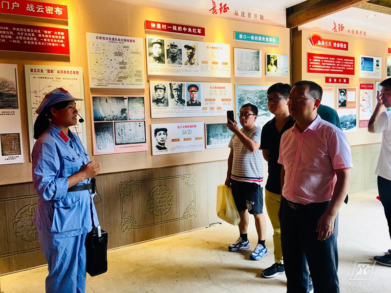 第二天一早,大家来到了二万五千里长征零公里处、红军长征第一村——钟屋村。1934年9月,为保卫苏区,掩护红军主力转移,红九军团、红二十四师和近万名闽西地方武装在中央苏区“东大门”松毛岭阻击数倍于已的国民党军“围剿”,浴血奋战七天七夜。9月30日,红九军团等撤离阵地,在钟屋村观寿公祠前举行誓师大会,告别乡亲,开始二万五千里长征。在这里,大家再次看到了当年中国共产党领导的红军战士为国为民浴血奋战的峥嵘岁月,也深刻理解了红军长征的伟大历史和重要意义。