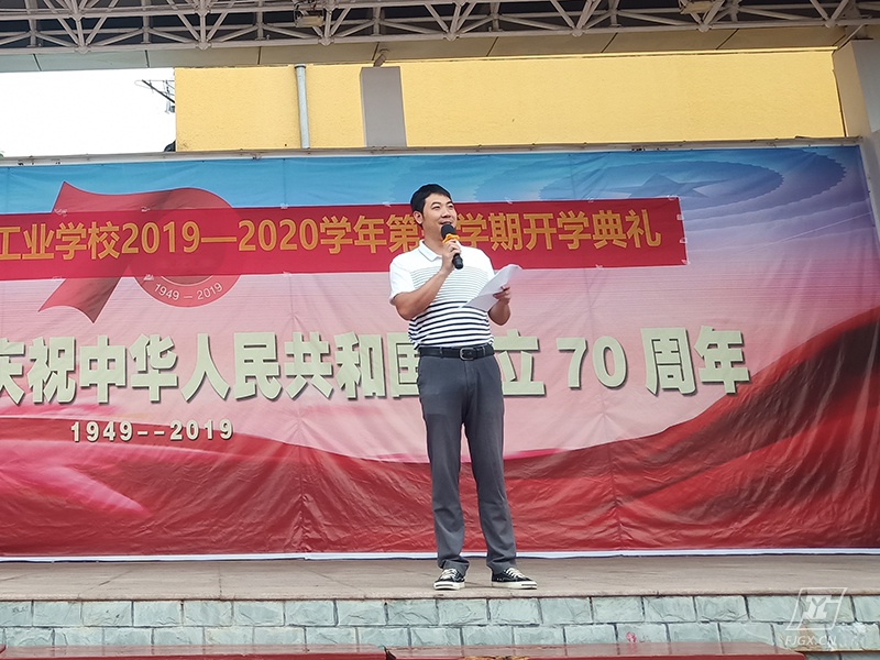 机械专业教学部学生会主席18数控1班的郑梓龙同学作为学生代表发言:一个崭新的新学期希望19级调整好自己,用最好的状态去迎接接下来的挑战。18级的同学们要在这一年里认真学习,不断完善自己各方面的本领,为学业水平考试打好坚实的基础,勇克难关,收获佳绩。