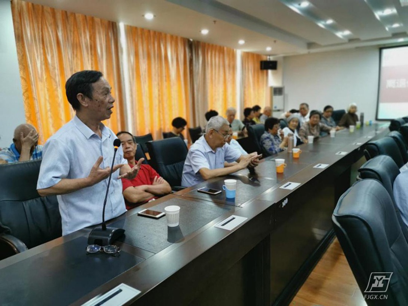 上午10:00,离退休教职工们在难得相聚的欢乐气氛中乘坐电梯前往综合大楼十楼第一会议室与校领导班子进行座谈。会议由校工会主席余梅英副校长主持,她首先对离退休教职工致以节日的问候,并对大家精神矍铄的良好状态表示欣喜。接着,林俊标校长向离退休教职工们汇报了学校发展近况,由学生人数增多带来的一系列挑战都在全校教职工齐心协力、发挥集体智慧之下一一破解攻克。座谈会上,离退休教职工们欣赏了工校校歌《追风破浪万里疆》,以及新鲜出炉的“庆祝祖国70华诞”师生活动的航拍视频,大家纷纷表示切身感受到学校的蓬勃朝气和大步向前的良好态势,对此倍感欣慰。