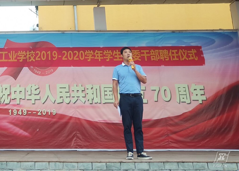 在庄重的升旗仪式后,学生科李旭东老师发表讲话:你们从稚嫩到成熟,能力越来越强,你们要做到参谋到位,服务主动,协助得力,落实见效,今天我们在此隆重集会,肯定成果、分享喜悦,再鼓干劲,为今后工校更好的发展积蓄力量。
