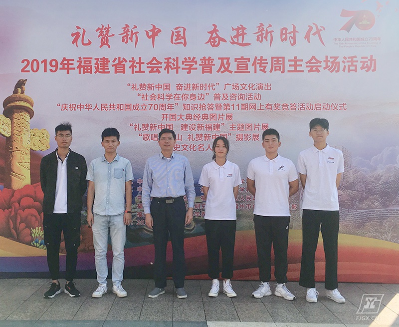 2019年10月19日上午,由省委宣传部、省社会科学界联合会联合主办的,“礼赞新中国 奋进新时代”2019年福建省社会科学普及宣传周主会场,在福州仓山万达广场举行。应社科联邀请,我校林俊标校长亲自带队,程容娟老师、王国鹏老师、梁弘毅老师、陈龙老师和来自各个专业教学部学生代表一行28人前往主会场参展。