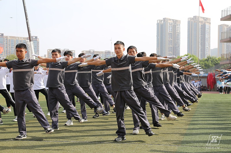 今年五个专业教学部团总支给我们献上了一个个精彩的节目:汽车专业教学部的匍匐刀刚毅有力;电气专业教学部的舞狮喜气腾腾;机械专业教学部红旗队雄赳赳气昂昂;信息专业教学部舞动着红色的绸伞,表达对学校美好明天的祝福;经贸专业教学部的200人方阵,变化着不同的字样,喊出了少年中国的志气。