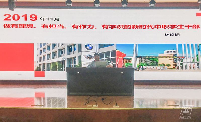 班干部是班主任的左臂右膀,是班级管理的重要力量。一支优秀的班委团队,是班风学风建设的关键和保证。为了进一步提高我校学生干服务意识、责任意识和综合能力,我校林俊标校长于2019年11月4日下午4时在综合楼十二楼报告厅开讲,主题是“做有理想、有担当、有作为、有学识的新时代中职学生干部”。
