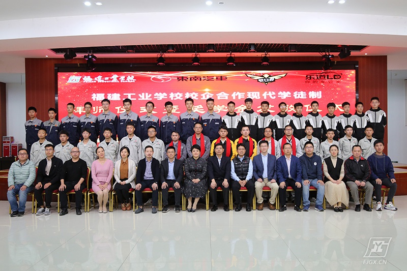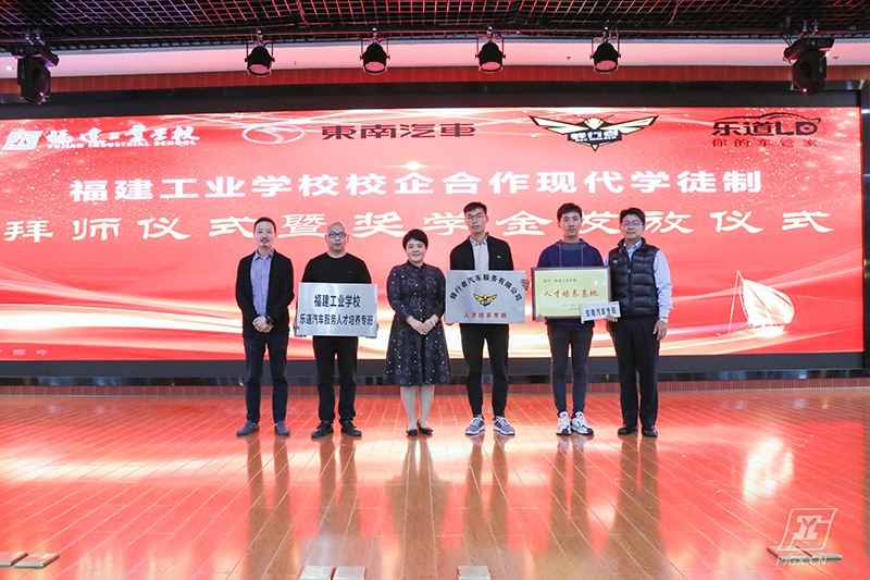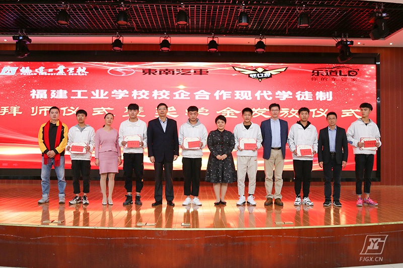 2019年11月27日,福建工业学校与东南(福建)汽车工业有限公司、蜂行者汽车服务有限公司、福建省乐道汽车服务有限公司在福建工业学校综合楼十二楼学术报告厅隆重举行现代学徒制班授牌拜师仪式暨18东南汽车专班及蜂行者汽车专班奖学金颁发仪式。福建工业学校林俊标党委书记、校长,杨尊东副校长,叶扬副校长,东南(福建)汽车工业有限公司江佾达副部长、卢娘招经理,蜂行者汽车服务有限公司创始人陈正芳总经理,行政培训部赖雅萍副总监及福建省乐道汽车服务有限公司创始人陈飞鸿总经理、人资部门黄舒宁总监等出席了此次活动。整个仪式由招就办主任兼汽车专业教学部主任余茂生老师主持。