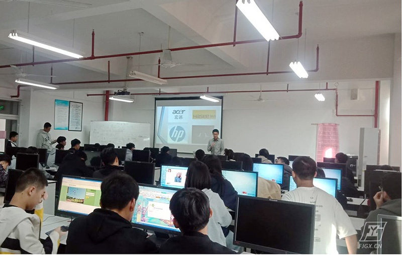 与此同时,营销口才比赛也在八楼如火如荼地进行着。比赛形式为一人一组或多人一组,可事先准备好的文案,现场上台展示,推销某一款电脑的性能,通过短视频对比分析校卡带的质量。参赛选手准备充足,热情高涨,声情并茂,面对老师或同学们提出的突发状况,沉着应对,丝毫不怯场。