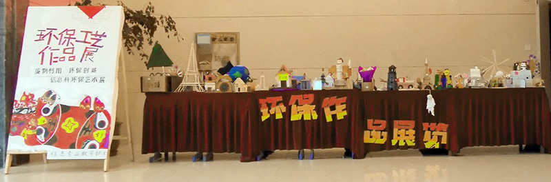 各个班级做好了充分的准备,由木棍到纸箱无奇不有,让同学们合理利用资源,保护生态平衡,促进经济持续发展。