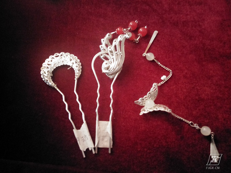 19动漫3班把根根铁丝缠绕在一起加上红珠连接成美轮美奂的簪,体现出中国悠久文化历史。