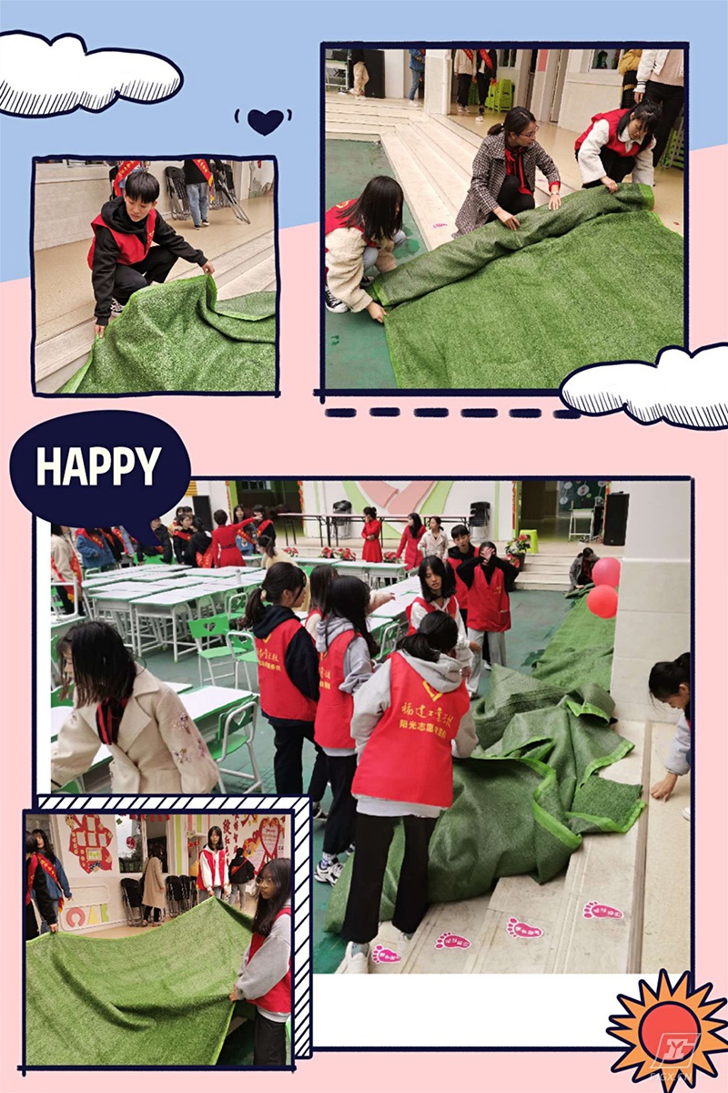 早上七点多我们就早早地坐车赶到培智学校。在老师们的安排下,我们抓紧帮忙布置场地,为今天的活动做好充分的准备。看啊!同学们认真的样子真可爱!