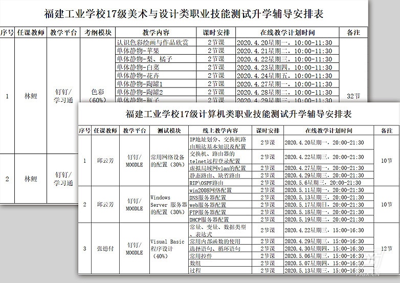 福建工业学校信息专业教学部积极响应”停课不停教,停课不停学“号召,根据学业水平考试,确定了“18级学考课程优先,17级升学辅导兼顾,19级基础课程跟进”的线上教学方案。