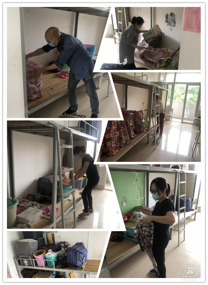 根据疫情防控的要求,每间宿舍住宿不超过6人。学校经过周密的部署,制定了新的住宿方案,并召集全体18级班主任到校整理各班学生行李,整顿宿舍卫生。通过合理安排现有宿舍,尽量腾挪出空间,为学生准备好干净安全的住宿环境,迎接复学的到来。