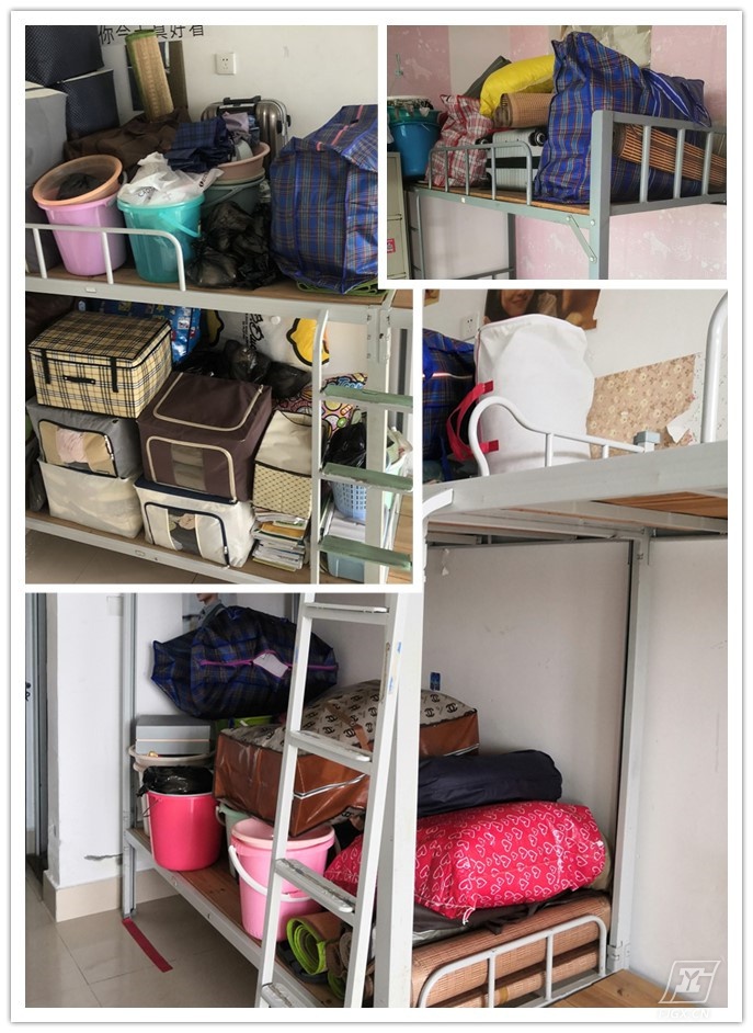 时值春夏交替,空气中弥漫着炎热的气息,稍微多运动几下就会汗流浃背。在整理学生个人物品之前,班主任们先对其进行仔细清点,然后分类整理,并装入事先买好的编织袋中。有的同学行李比较多,整理起来工作量不小。尽管如此,没有一位班主任有丝毫怨言。他们把学生当成自己的孩子,尽职尽责,任劳任怨,不怕脏,不怕累,一丝不苟地把学生的物品一一整理好。