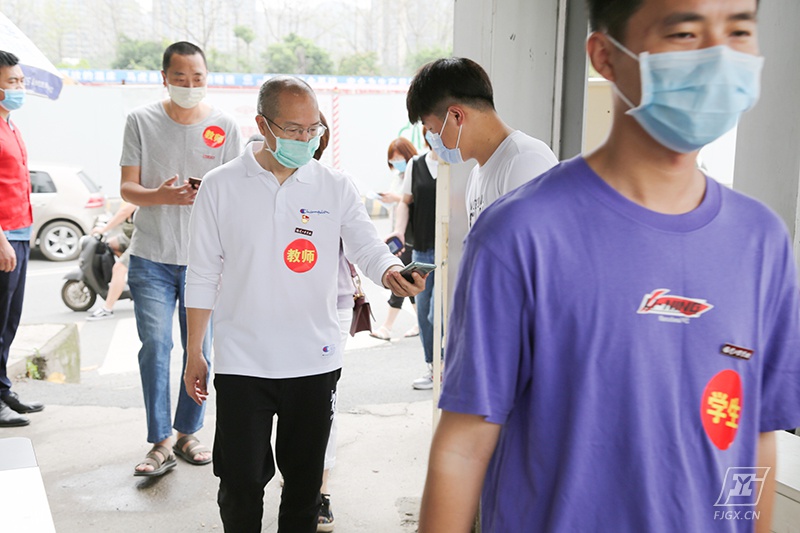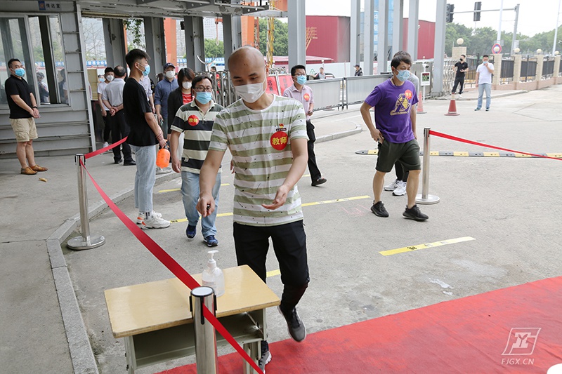 1、师生按照间隔一米列队校门口外等候,每个人出示绿色健康码给工作人员检查。教师和学生分成两个通道,依次经过鞋底消毒、手部消毒以及热成像体温监测,有序进入校园。
