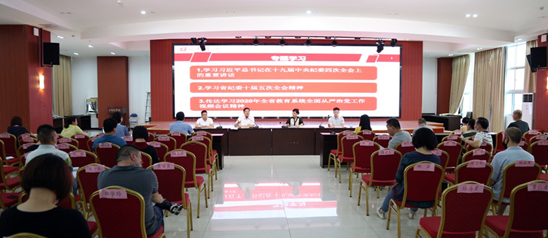 6月9日上午,我校在综合大楼十二楼报告厅召开2020年全面从严治党工作会议,深入学习贯彻习近平新时代中国特色社会主义思想和党的十九大精神,全面贯彻习近平总书记在十九届中央纪委四次全会上的重要讲话精神,认真落实省纪委十届五次全会精神和全省教育系统全面从严治党工作视频会议精神,总结学校2019年度全面从严治党工作情况,部署年度全面从严治党工作。校领导、全体中层干部(扩大)参加了会议,会议由校党委委员、副校长余梅英同志主持。