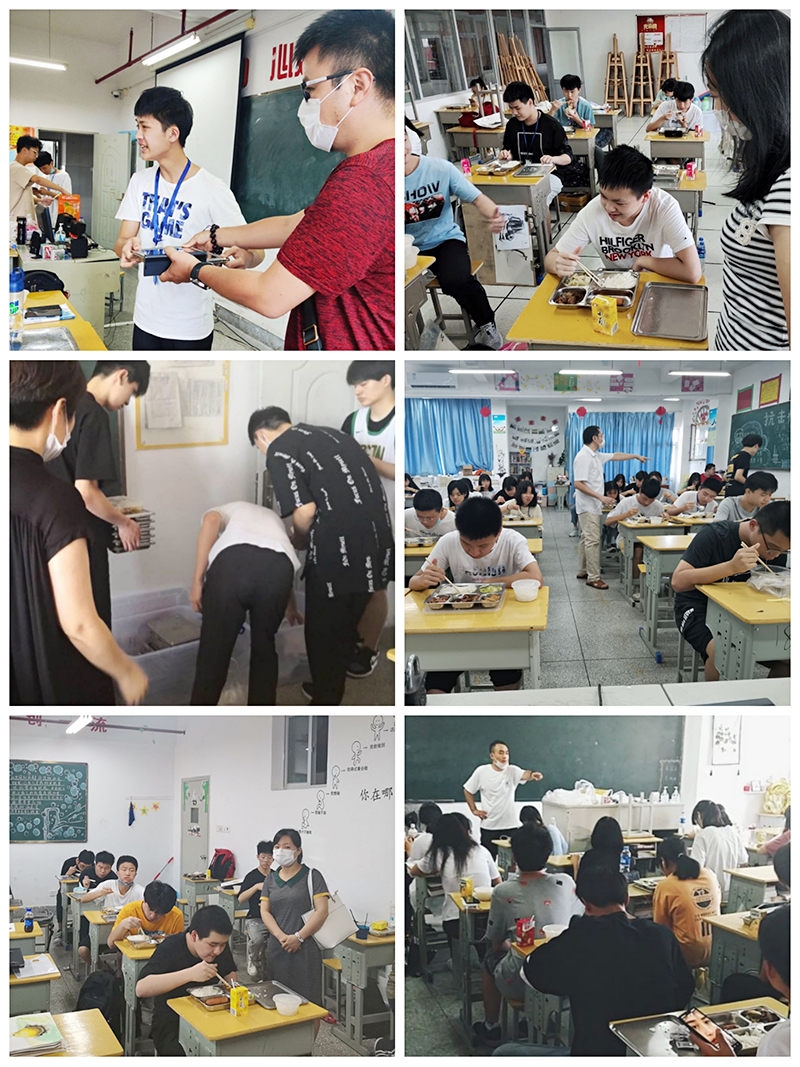 为切实做好新型冠状病毒感染的肺炎疫情防控工作,确保校园安全稳定,学校从实际情况出发,采用配餐制,安排全体学生分批次错时错峰在班级用餐。班主任们下班后,不顾劳累,常常抽空到班级,与同学们交流,了解他们的就餐情况,及时反馈问题解决问题,让同学们吃得放心、吃得健康、吃得营养。