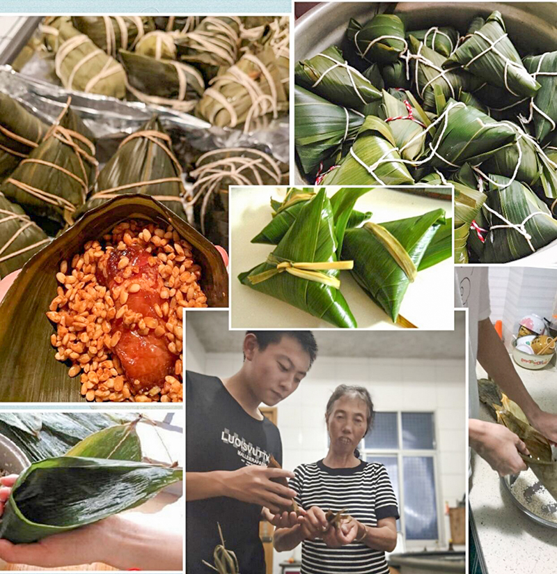 相传屈原投江后,人们不让鱼吃掉屈原的尸体,就往江中扔粽子、包子等食物。所以就有包粽子、吃包子的习俗,同学们与家中的长辈一起浸糯米、洗粽叶、包粽子、品粽子,增进了与长辈直接的感情。