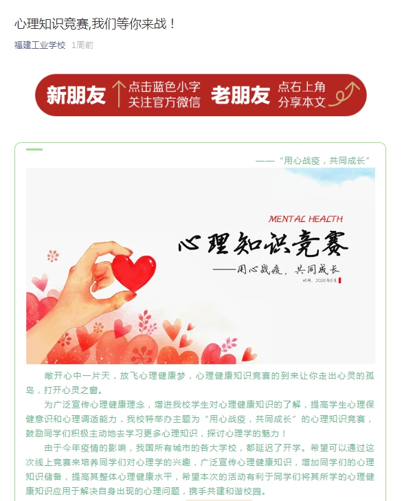 福建工业学校心灵家园 心理协会