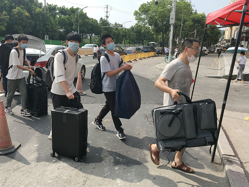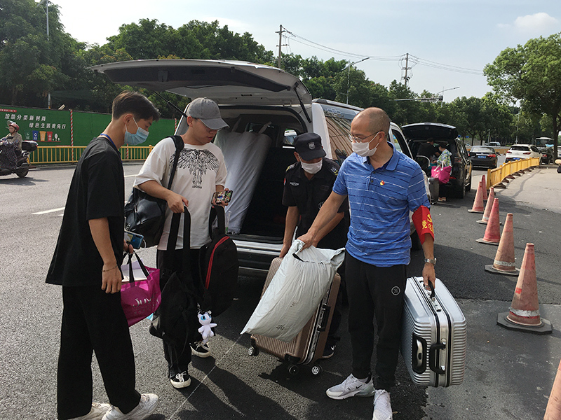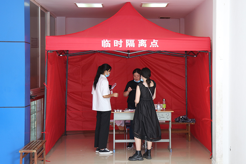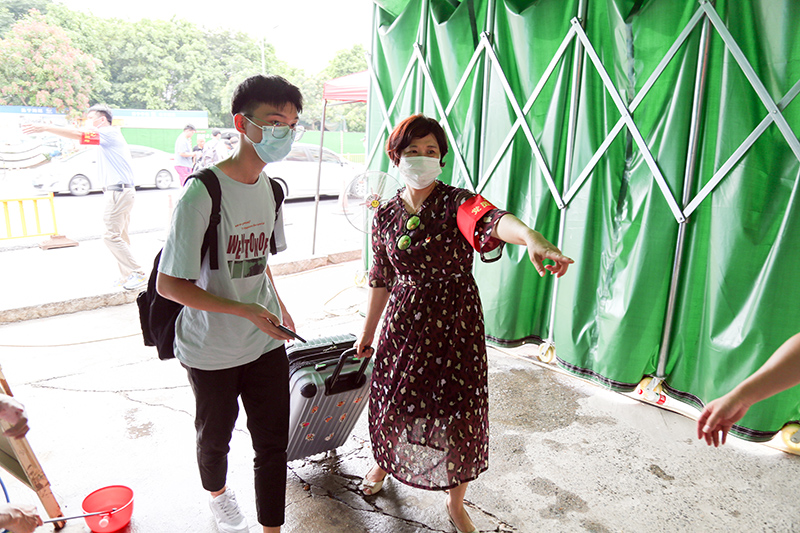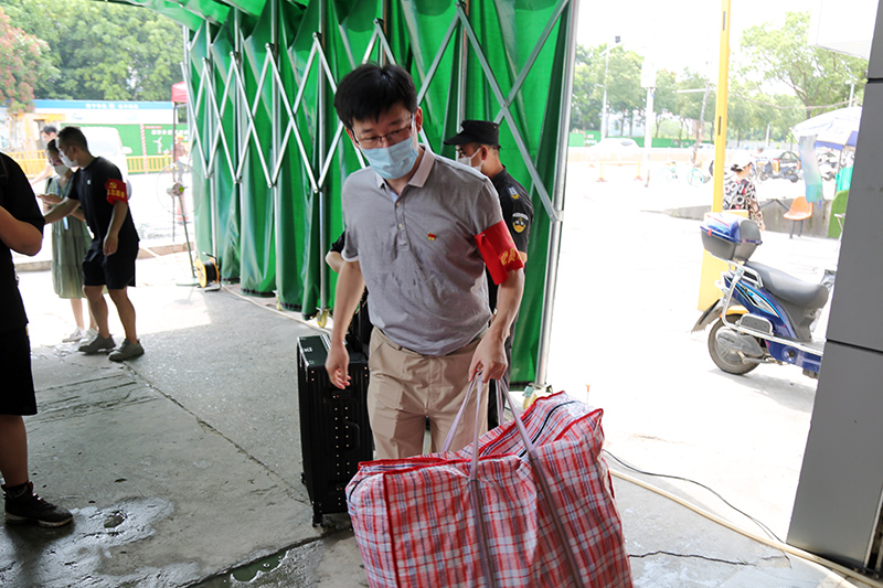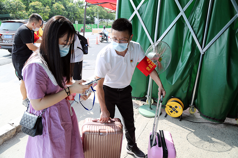 进入校园前,返校学生按照流程接受检测,在经过行李消毒、体温测量、健康码核验等程序后,按指定路线井然有序地进入校园、宿舍。