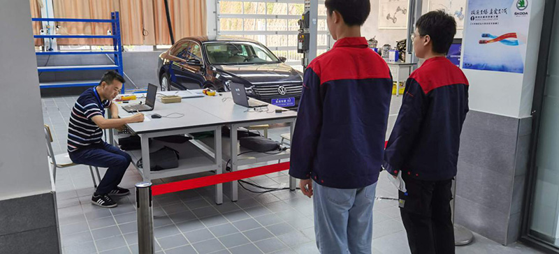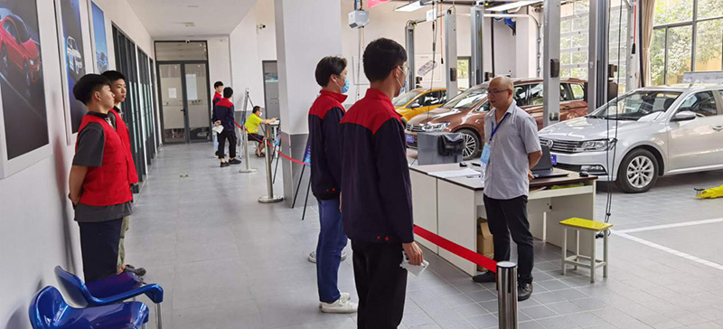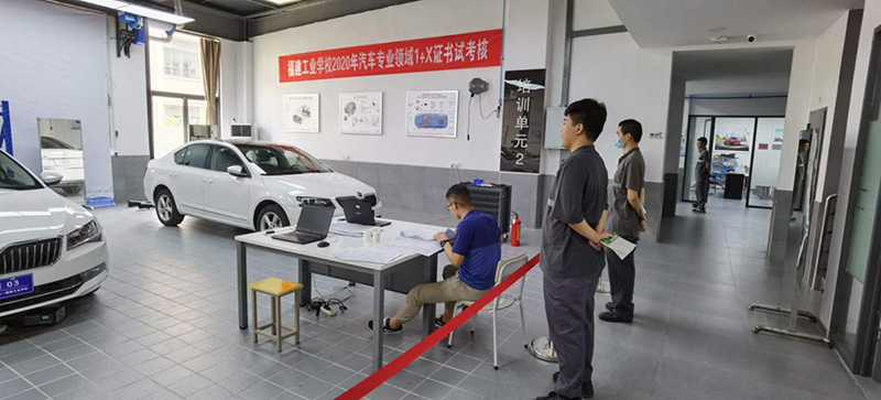 2020年7月15-16日,汽车运用与维修专业1+X 职业技能等级证书汽车电子电气与空调舒适系统模块“试考评”工作在我校上汽大众SCEP福建培养基地顺利落下帷幕。此次“试考评”工作是在省教育厅的领导下,在中车行培训评价组织省级专家督导组的指导下进行的,邀请了福建船政交通职业学院林可春副教授担任督考员,朱剑宝等4位汽车领域“1+X”考评师担任考评员。