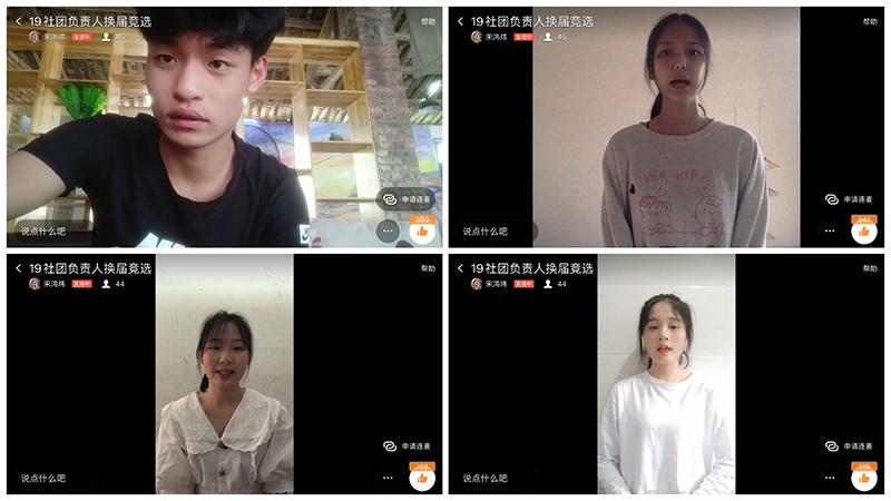 会上,参加竞选的同学依次进行了竞选演讲,各位候选人回顾了一年来在社团的工作经历,从自身优势、个人能力、社团规划等方面进行了自我阐述。本次“云换届”给更多的学生提供了锻炼自己的机会,同时也给我校各个社团注入了新的血脉。