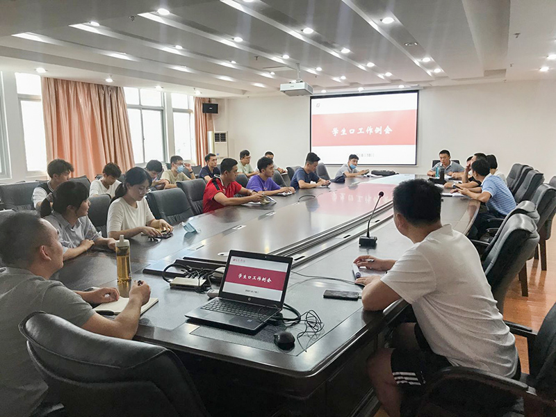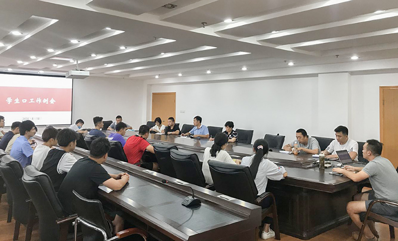 在当前疫情防控常态化形势下,为部署新学期工作,迎接2018级学生顺利返校复学,8月19日下午,我校学生科在综合楼10层会议室召开2020-2021学年第一学期期初学生工作会议。学生科科长李旭东主持会议,余梅英副校长、学生科副科长刘洲、五个专业教学部学生管理副科长及全体学生管理老师参加会议。