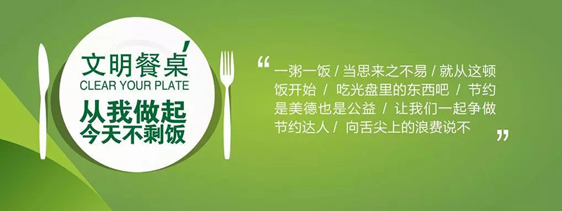 “一粥一饭,当思来之不易;半丝半缕,恒念物力维艰。”粮食危机是人类社会始终面临的重大课题,珍惜粮食、节约用餐是中华民族的优秀文化和传统美德。习近平总书记多次指出:要坚决制止餐饮浪费行为,在全社会营造浪费可耻、节约光荣的舆论氛围。在此,我们面向全体老师和同学发出如下倡议: