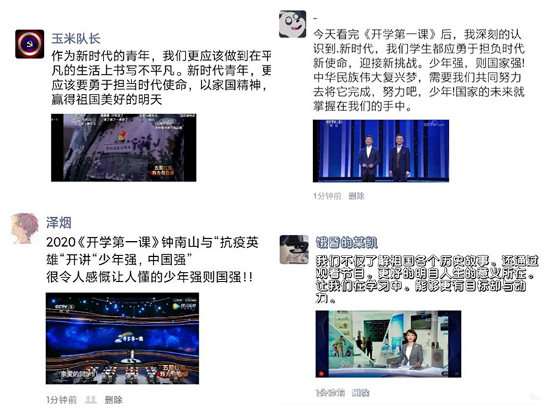 为大力弘扬抗疫精神,深入开展爱国主义教育,“系好人生第一颗扣子”, 9月1日晚八点,我校组织全体学生准时收看教育部、中宣部、中央电视台等联合主办的以“少年强,中国强”为主题的2020年《开学第一课》专题节目。