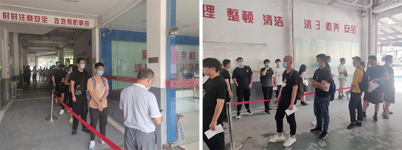 根据疫情防控要求,学生返校前,由班主任对学生近期身体状况进行摸底排查,并填写健康承诺书;入校后,学生出示健康码并测量体温。进入服务中心后,学生由专人引导有序排队,依次办理团员关系转接、毕业证领取等手续。