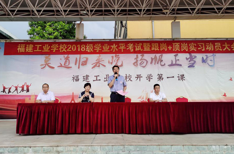 2018级学子正面临学业水平考试和跟岗顶岗实习两大考验。为鼓舞学子士气,号召同学们力争上游,认真参与跟岗顶岗实习,我校于2020年9月11日下午举行2018级学业水平考试暨跟岗顶岗动员大会。林俊标校长、余梅英副校长、杨尊东副校长、余茂生主任出席会议,会议由学生科科长李旭东主持。