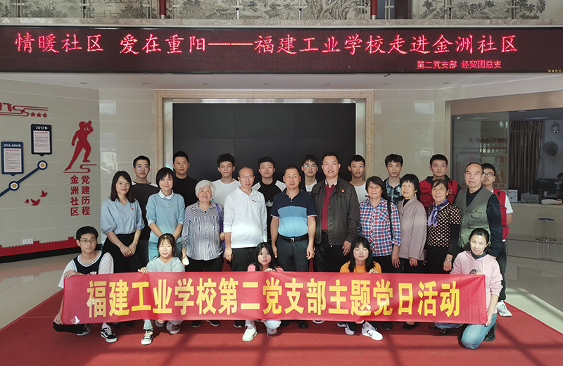 岁岁重阳,今又重阳,彩云追月,桂花飘香,秋高气爽胜春光,尊老、敬老、爱老是中华民族优良传统,应该大力弘扬。在重阳佳节来临之际,2020年10月23日下午,福建工业学校第二党支部6名党员和经贸专业教学部团总支11名学生一起走进金洲社区,与社区老人互动,开展了“情暖社区,爱在重阳”主题活动。