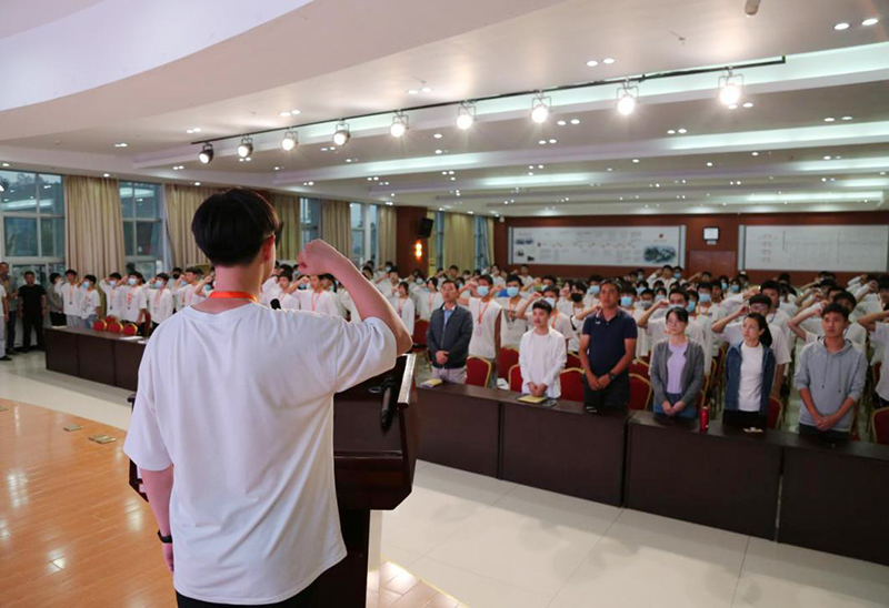 19级学生代表俞皓天带领全体学生干部高举右拳,大声宣誓。