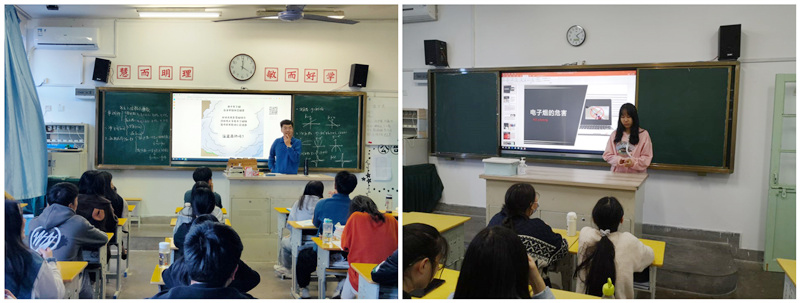 课上,班主任们通过播放宣传视频、现场讲解的方式向同学们详细介绍了什么是电子烟、电子烟的危害、电子烟对青少年的不良影响,旨在引导同学们筑牢珍爱生命、远离电子烟的思想防线,养成积极健康的生活习惯。