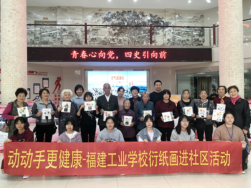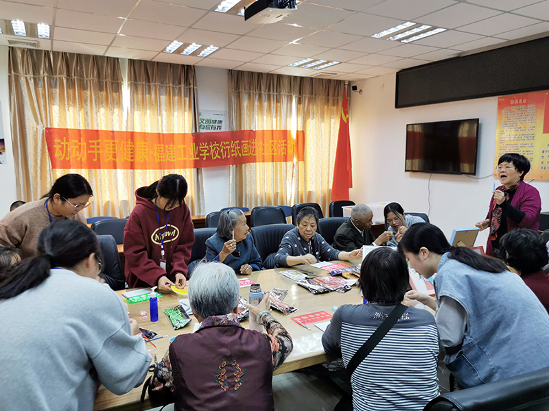 2020年11月13日下午,福建工业学校经贸专业教学部师生一行10人来到共建单位金洲社区开展“动动手更健康—衍纸画进社区”活动。