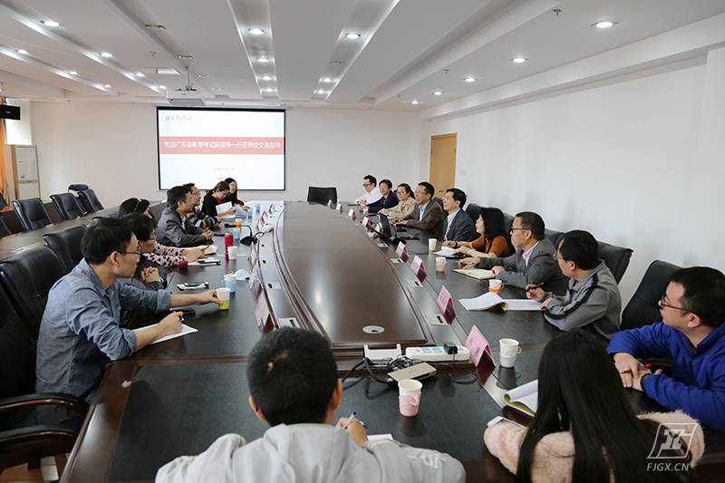2020年11月13日上午,广东省教育考试院孔智军副院长一行8人在福建省教育考试院丁毅副院长、福建省教育厅职成处程征科长等的陪同下莅临我校交流指导。