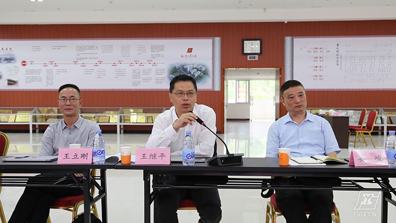 参观结束后,参访团与学校领导在学校综合楼十二楼学术报告厅召开座谈会。会上,双方共同观看了校歌MV,林俊标校长简要介绍校歌MV的由来,并作了题为《深耕情怀,行稳致远》的汇报。他以“情怀”“对接”“发力”“提质”“服务”五个关键词为切入点,介绍了学校的基本情况、治校之路、品牌效益以及面临问题,并提出学校在师资队伍建设、专业发展设置、教师获得感等方面存在的问题和困惑。