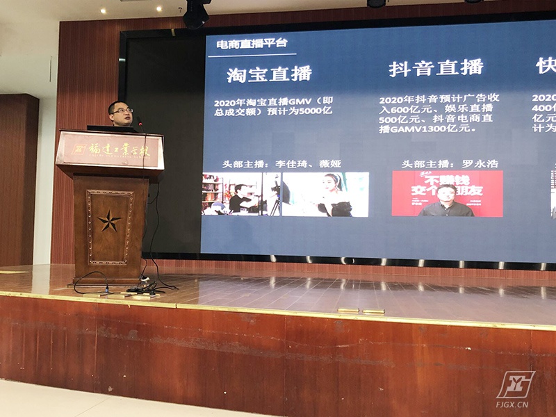 我校经贸专业教学部于2020年12月1日上午邀请到福建弥越传媒公司杨生习总经理到校,为电子商务班、市场营销班两百多名学生开设了一场生动有趣的“走进电商直播”主题讲座。