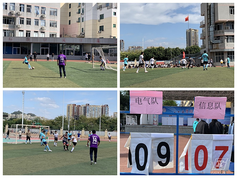 电气专业教学部和经贸专业教学部实力相当。一开场,双方前锋灵活地左突右击,在众多防守队员中带球穿过,创造了很多射门机会,但都被对方迅速拦截,赛况十分激烈。经过一个小时激烈的比拼,电气专业教学部以1:0的成绩险胜。